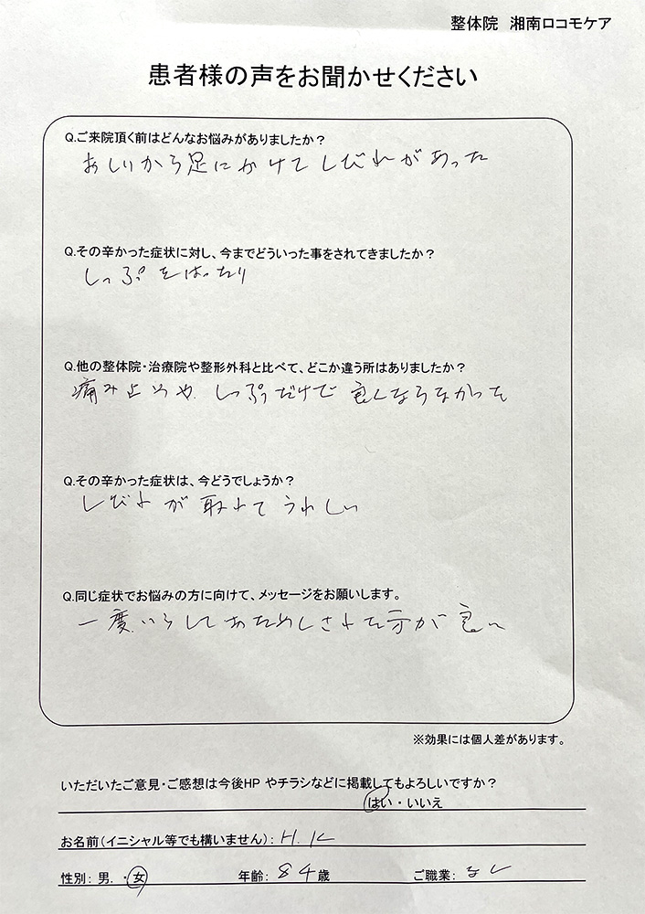 →通院して、2ヶ月も経たないうちにしびれは出なくなりました!